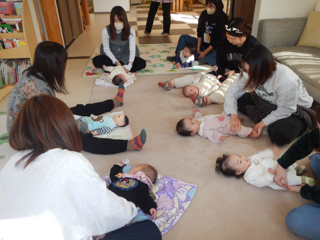 • みんなでベビーマッサージをしました