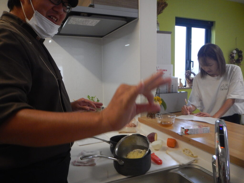 例によってこどもむらの海老沢調理士さんに講座を進めて貰う事にしました。