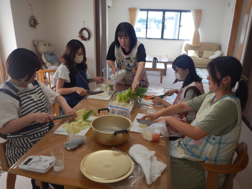 妊婦さんとスタッフでお料理をして、一緒にランチを楽しむ日なんです。