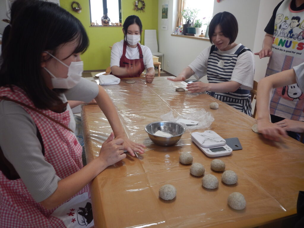 ベーグル作りは、毎回おなじみの望月さんに教えてもらいながら、みんななでコネコネ、コロコロ♪