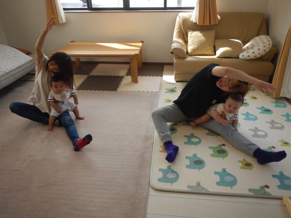 先月に引き続き、ストレッチ中心のヨガにして、ゆっくりとした動きでママの身体をほぐすようにしました。
