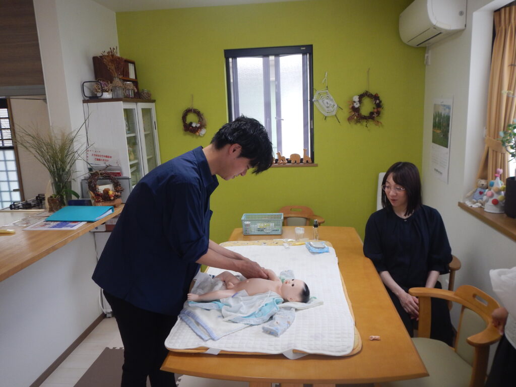 にじいろのおうちでの沐浴は1組ずつ練習できるので