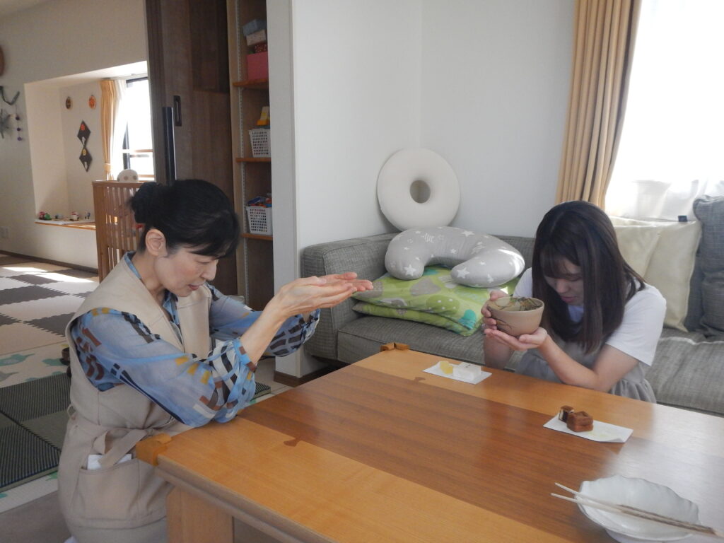 先生に点てていただいた後、体験としてスタッフに点ててもらい美味しくいただきました💕