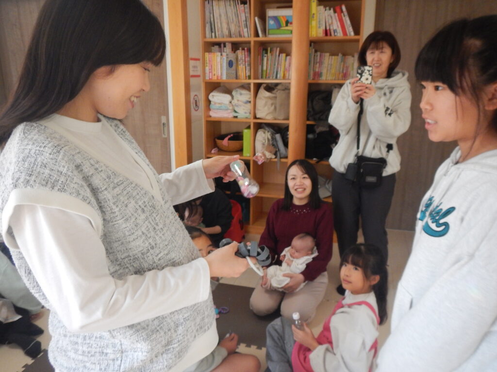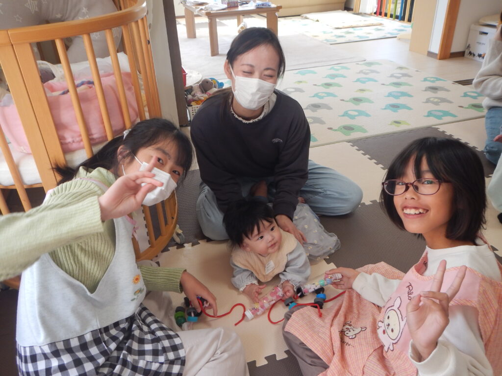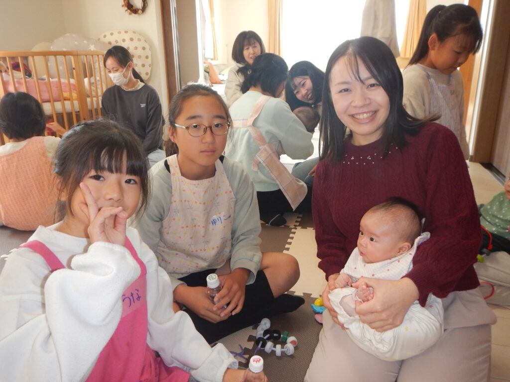 中々触れ合う事のない赤ちゃんと小学生、だっこも上手なお友だちもいて、終始ママも笑顔で見守っていました。