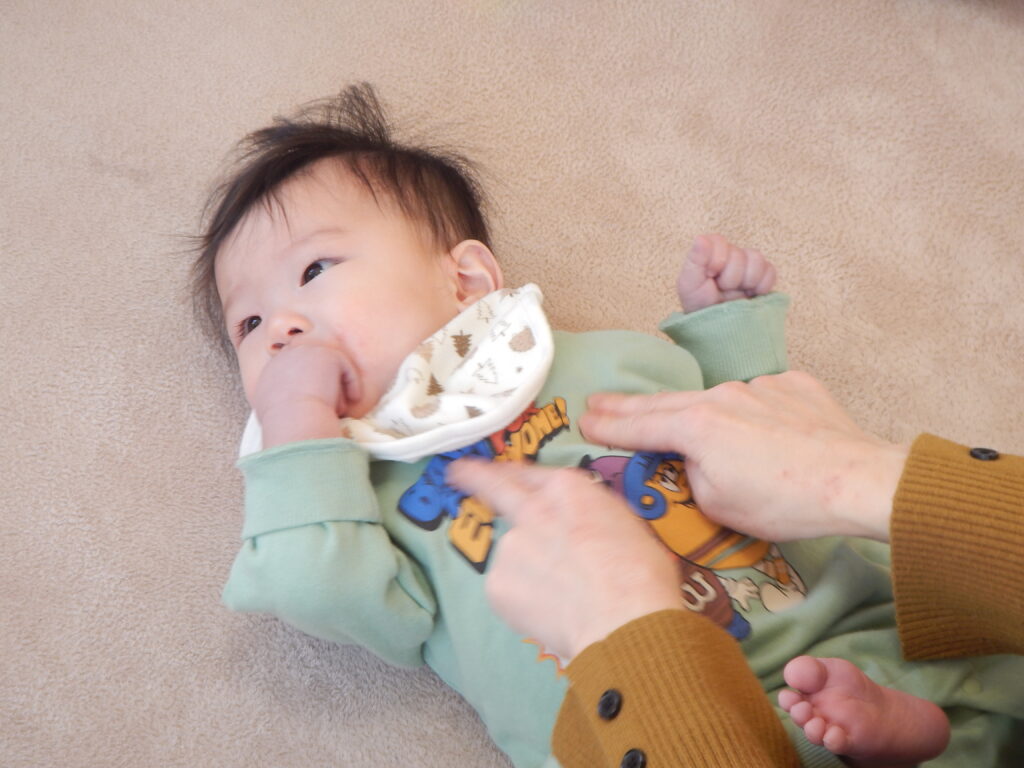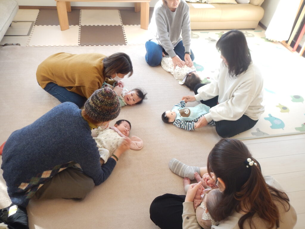 マッサージが始まると、ゴロンとしてママを見たり、声に耳を傾けて微笑んだり、徐々にからだもゆるりとしている赤ちゃん達♪