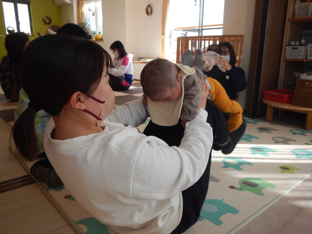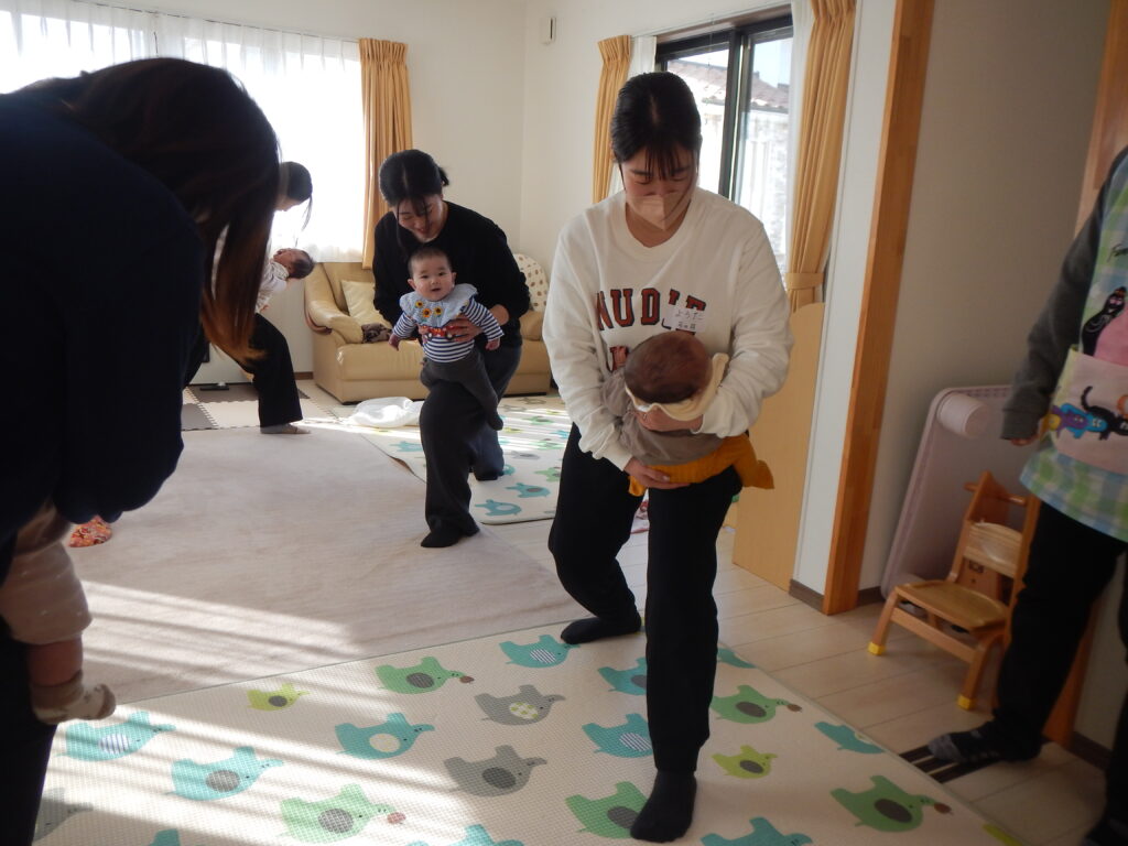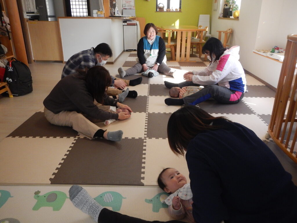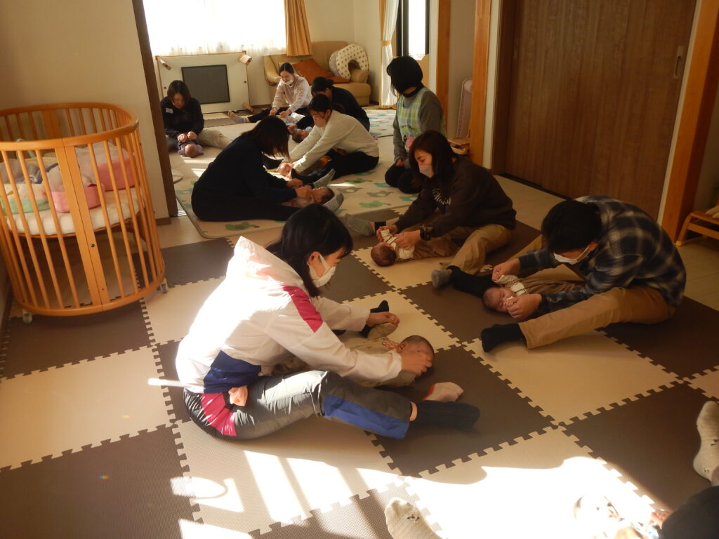 初めてにじいろのおうちに来てくれた赤ちゃん2人を含め、7組8人の赤ちゃん&ママ&パパが参加をしてくださいました。(1組の双子ちゃんもいました!)