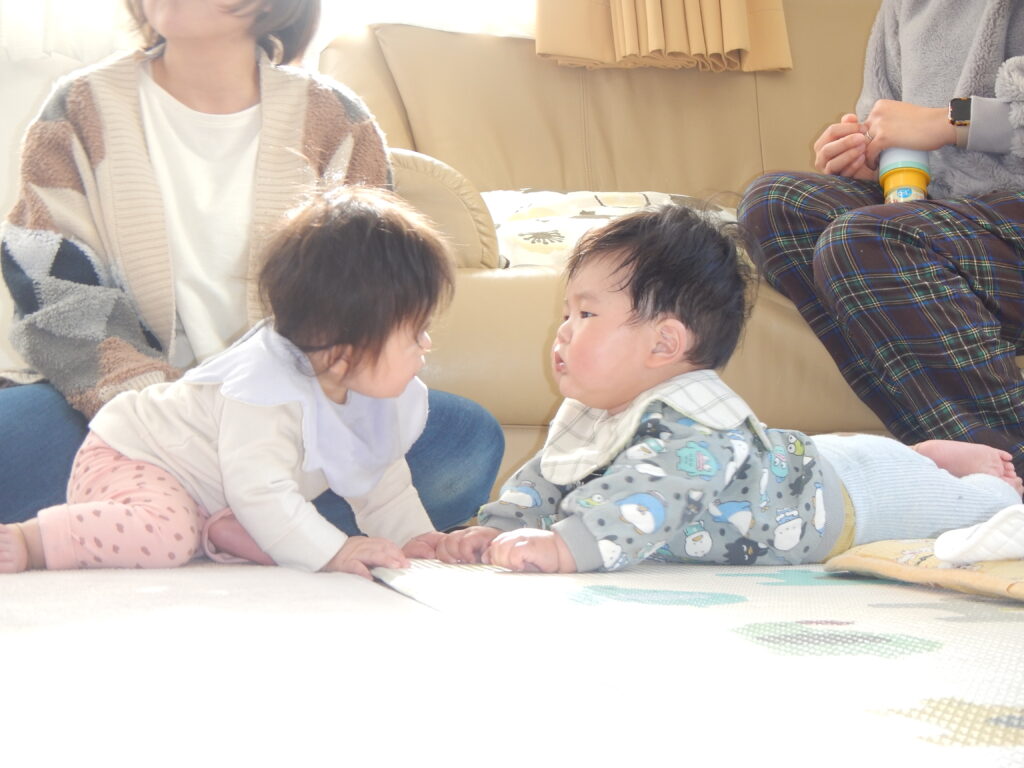 今日は3カ月から6か月の赤ちゃんとママ4組の親子が参加してくれました。