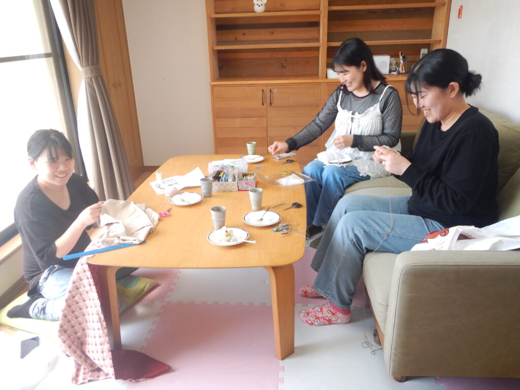 ママ達は2階で刺繍や手仕事をしながら、時々1階から聞こえる赤ちゃんの泣き声が気になりつつも、お喋り&お茶タイムでゆっくりできたようです。